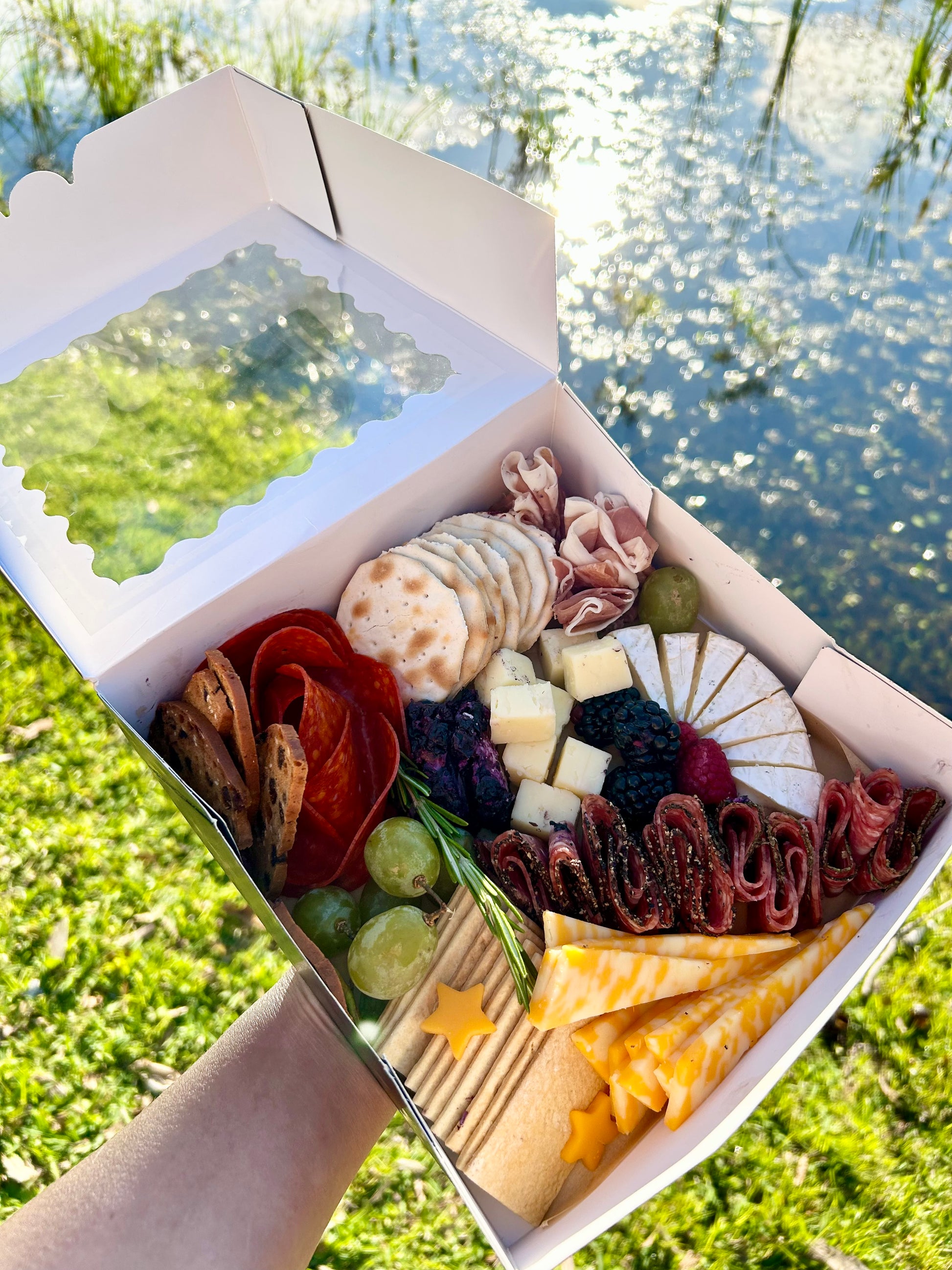 Indulge in our Solo Classic Charcuterie, a delightful selection designed for intimate moments. This curated board features an array of artisanal cheeses, gourmet cured meats, and an assortment of fresh and dried fruits. Complemented by a variety of crunchy nuts, artisanal crackers, and a touch of honey or preserves, this charcuterie experience is crafted to elevate your taste buds. Whether it's a romantic evening or a cozy gathering, our Solo Classic offers the perfect balance of flavors and textures.